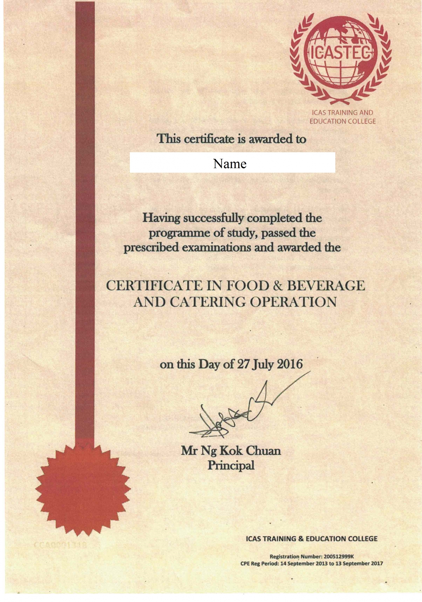 1. Chứng chỉ chuyên nghành nhà hàng và dịch vụ ăn uống (F&B)