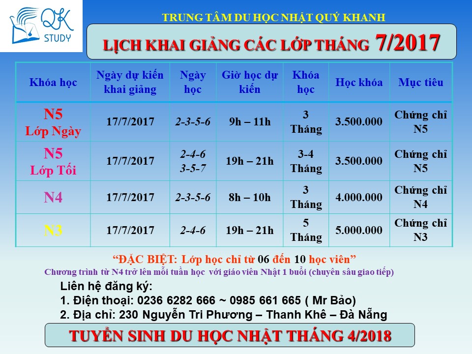 💢💢💢TRUNG TÂM NHẬT NGỮ QUÝ KHANH THÔNG BÁO KHAI GIẢNG CÁC LỚP TIẾNG NHẬT THÁNG 7/2017💢💢💢